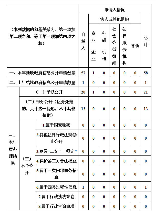 三、收到和处理政府信息公开申请情况