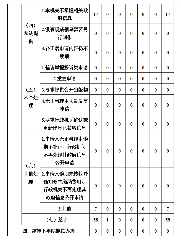 全年接收通过邮寄、网络提交的各类政府信息公开申请59件,内容主要涉及水利统计数据、工程建设、河湖管理等方面。严格执行政府信息公开申请接收、登记、审核、办理、答复、送达、归档等各环节要求,实行标准文本,提高答复专业化法治化水平,未发生因政府信息公开引起的行政复议和行政诉讼。认真落实《政府信息公开信息处理费管理办法》,未向政府信息公开申请人收取费用。