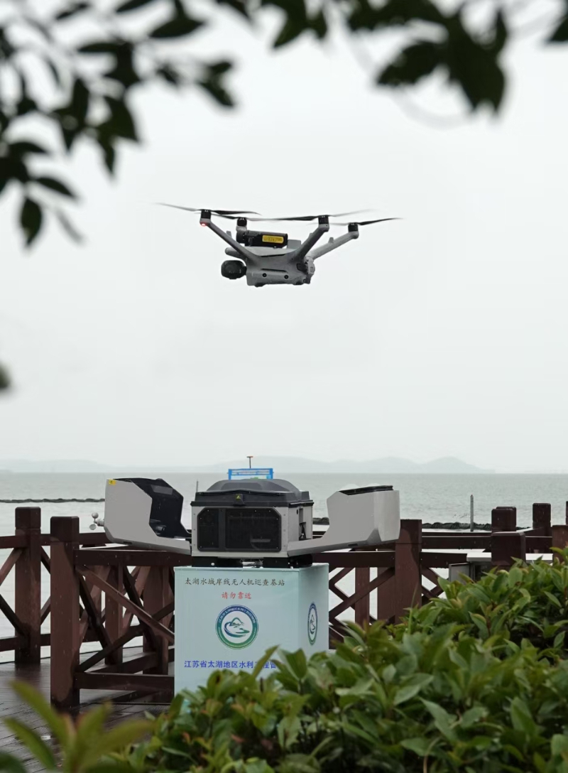 太湖之上,还有一支“空中奇兵”。近年来,省太湖管理处积极参与省水利厅河湖无人机自动巡检网络组建,目前太湖、长荡湖、望虞河等重要河湖已布设5座无人机自动巡检站,无人机每日定时升空,掠过湖面、掠过岸线,水面情况、岸线状况情况一览无余,成为人工巡查的“空中延伸”。